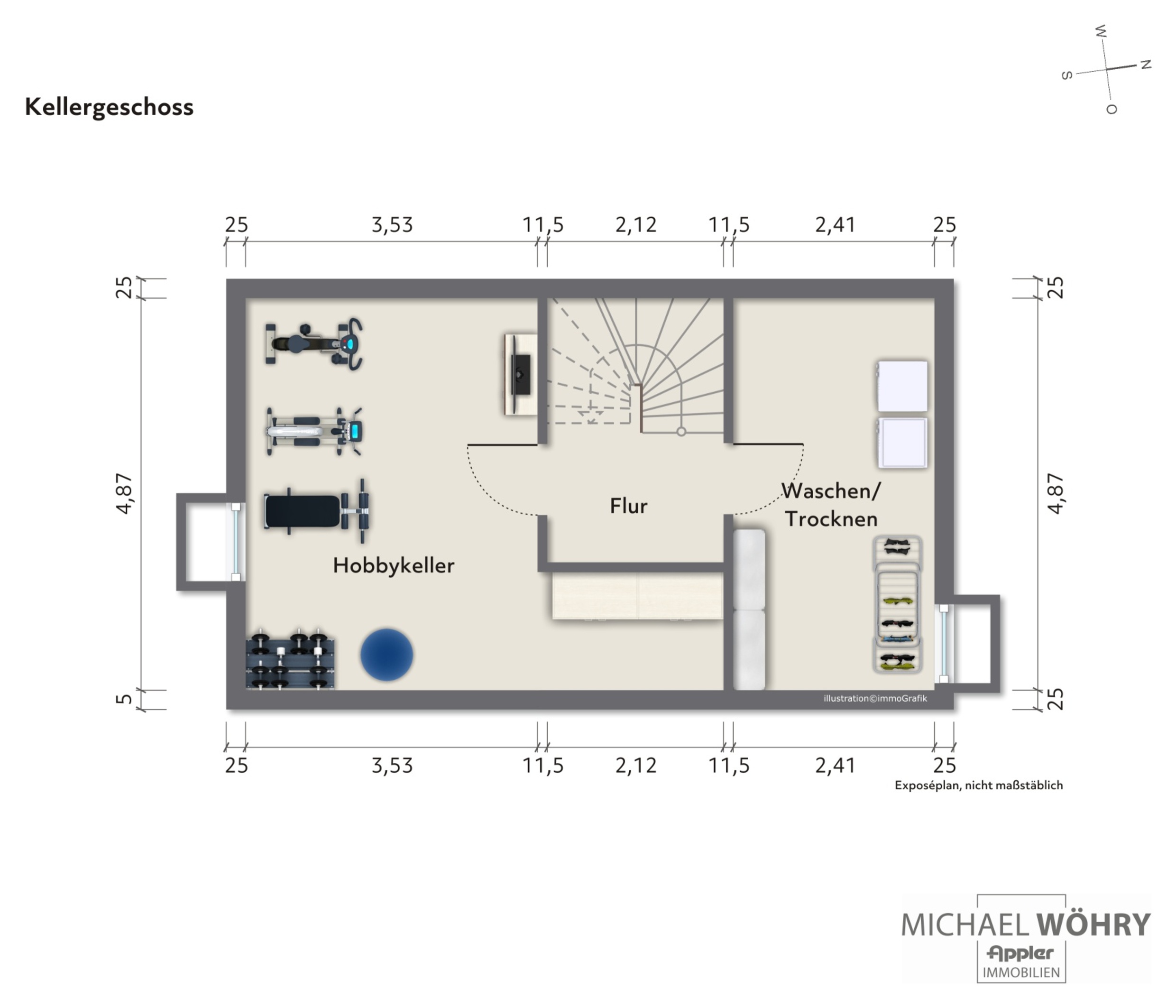Im Kellergeschoss stehen ein großzügiger Hobbykeller sowie ein Wasch- und Heizungskeller zur Verfügung.