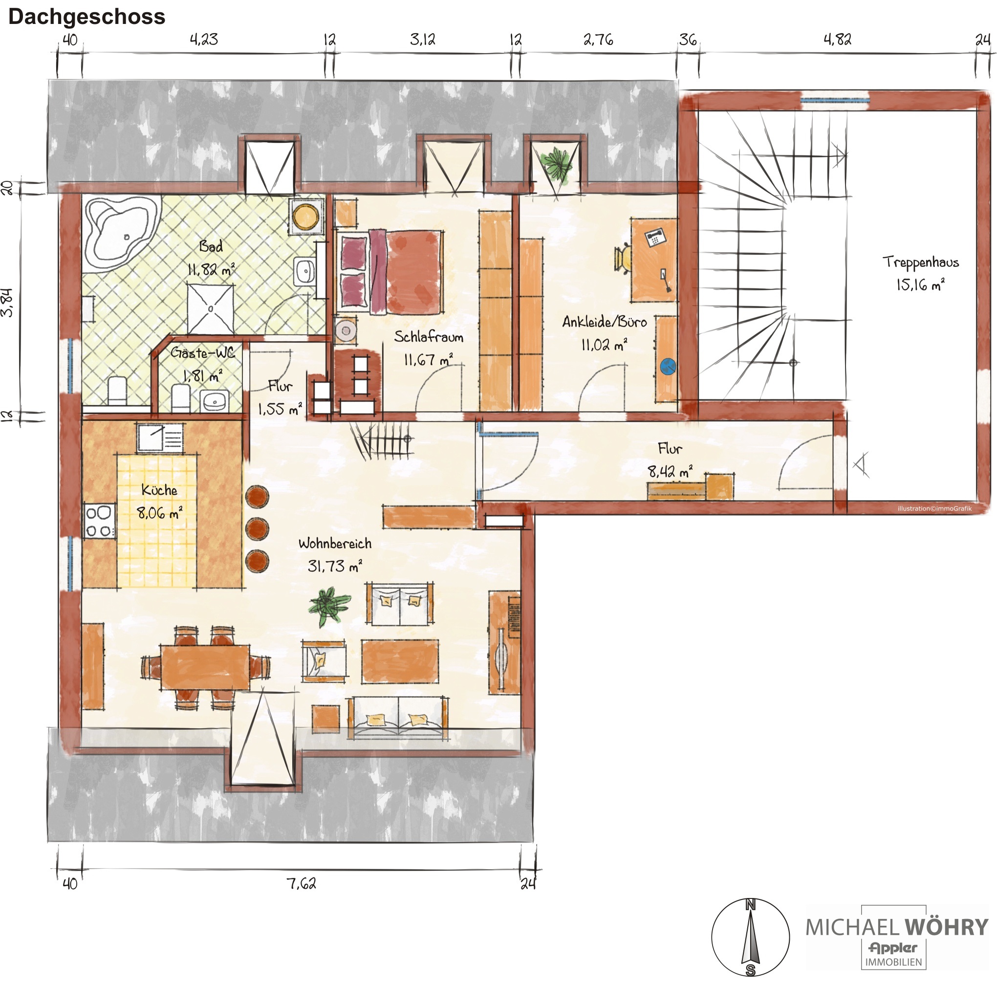 + Sichtdachstuhl, dadurch sehr hohe Decken