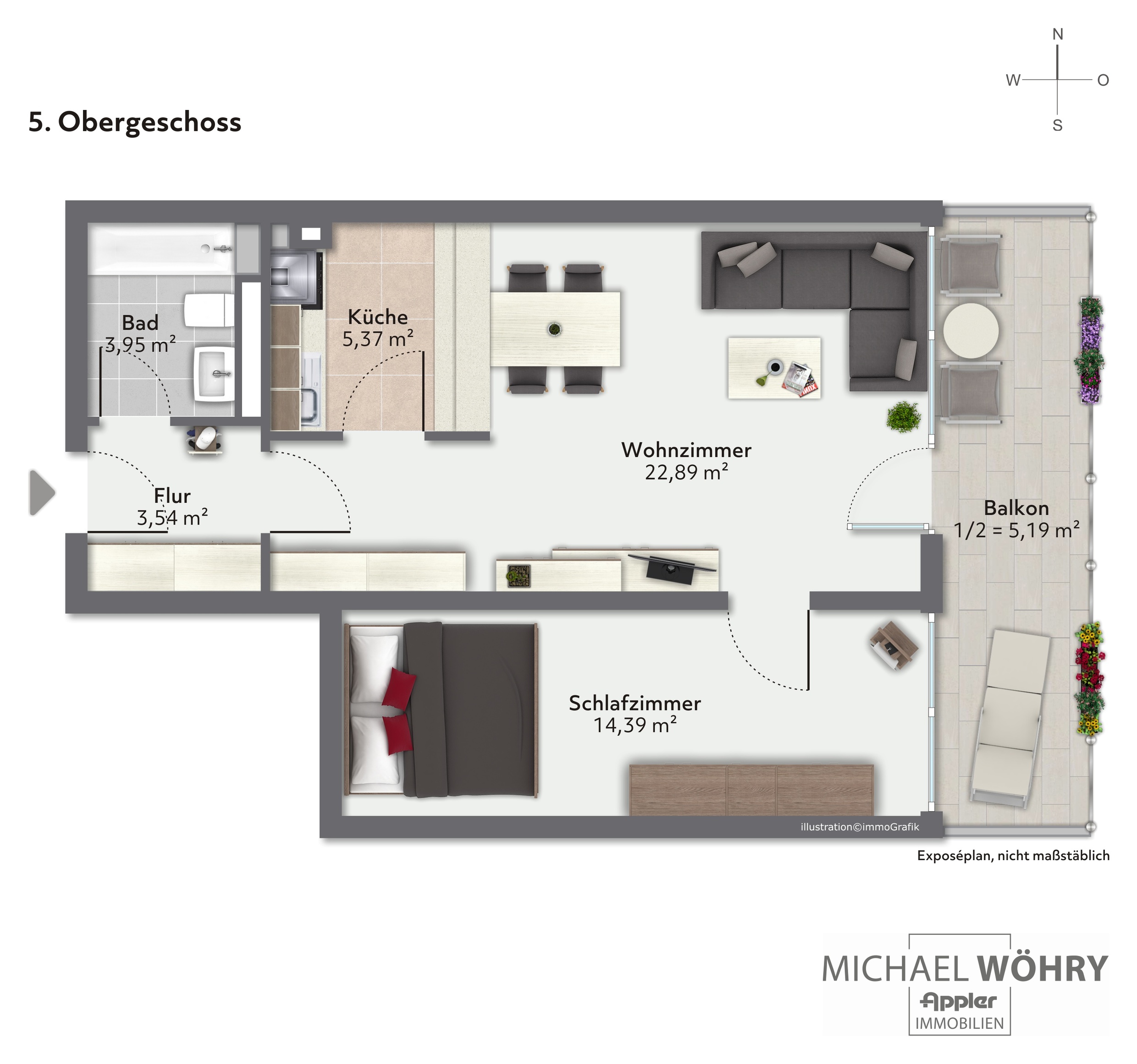 + 2-Zimmer-Wohnung im obersten Stockwerk (5. OG)