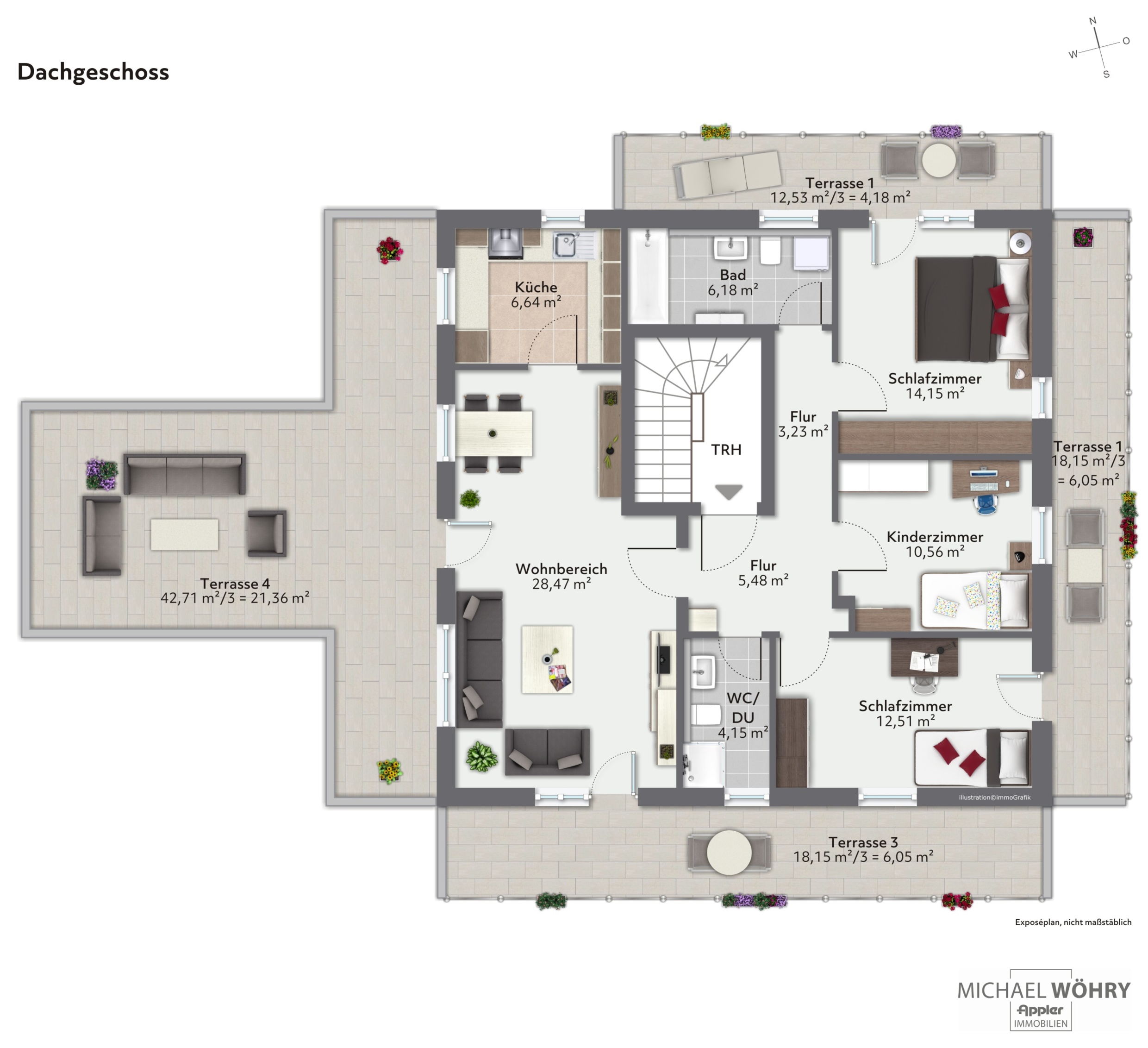 + über 42 m² Dachterrasse mit Süd und Westausrichtung