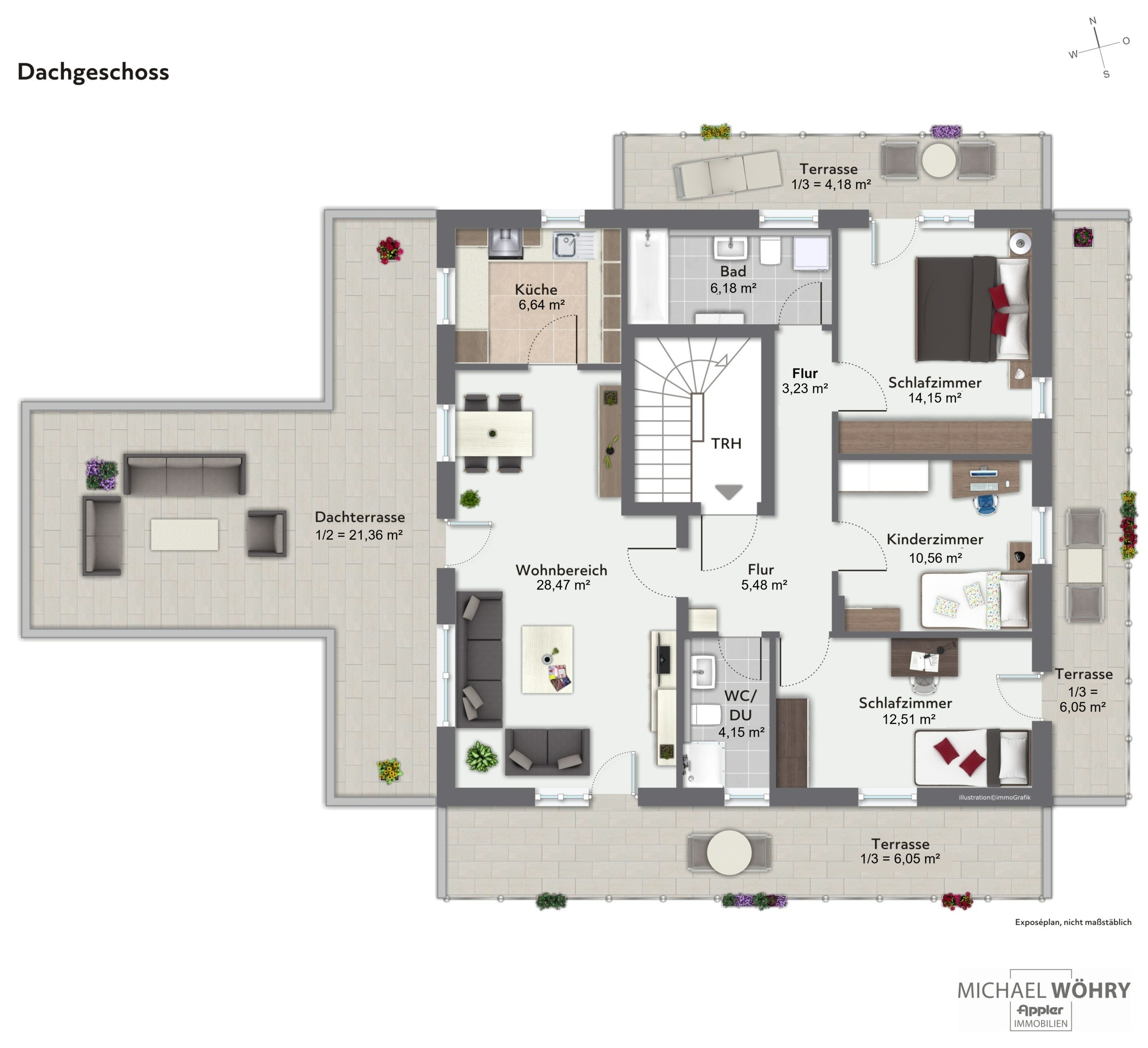 + über 42 m² Dachterrasse mit Süd und Westausrichtung