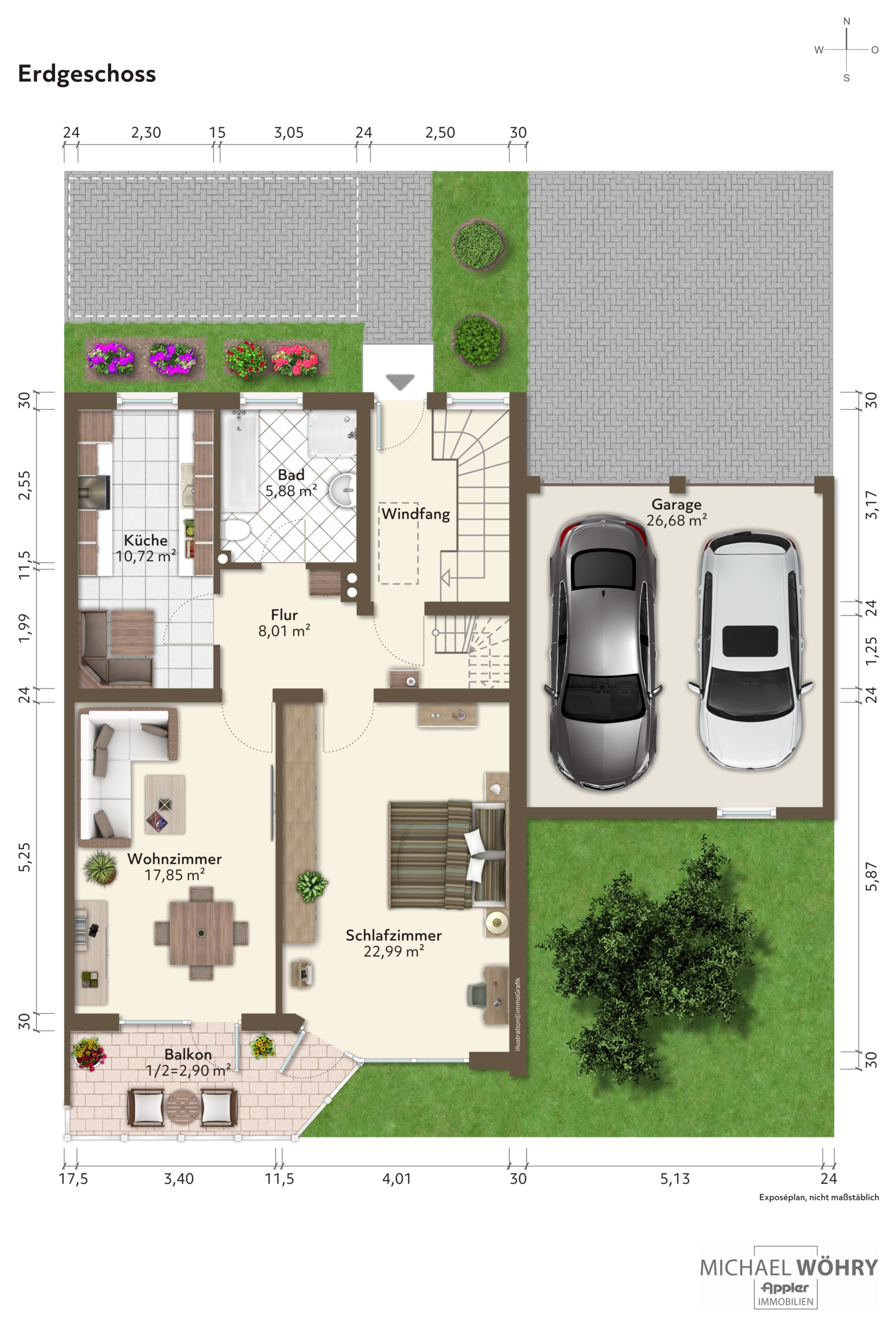 Käufer und Verkäufer verpflichten sich jeweils zur Zahlung einer Provision an die Firma Appler + Wöhry Immobilien i.H.v. 3,57 % (inkl. 19% MwSt.) aus dem notariell beurkundeten Kaufpreis. Die Zahlung ist fällig mit Kaufvertragsabschluss.